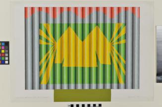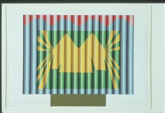 Descriptionmulti-coloured abstract image of lines, squares & triangles & at the top scallops - all depicting the North Shore of Burrard InletStatus