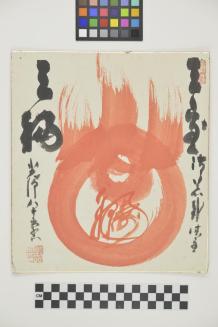 DescriptionCalligraphy by Bishop Sakamoto using Tessai's brush, donated at time of Tessai show.Status
