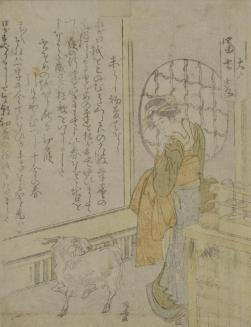 DescriptionInterior scene with kitchen items, of a woman and a sheep who is eating a paper or napkinStatus