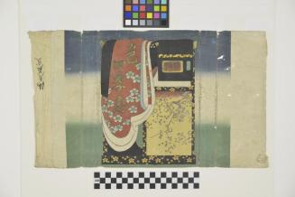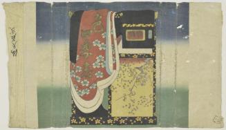DescriptionCover page of a surimono album depicts a Kimono on a rack and a prunus branchStatus