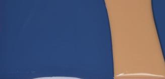 DescriptionFormed high relief image of an upside down flesh coloured foot with a red toe nail, on a blue backgroundStatus