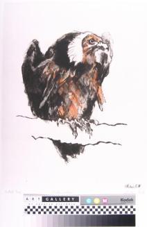 Descriptiona vulture on a perch highlighted with bits of orangeStatus