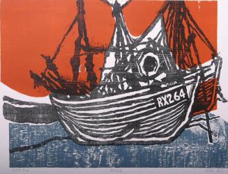 Descriptionprofile of a vessel marked "RX264", orange background and grey-blue waterStatus