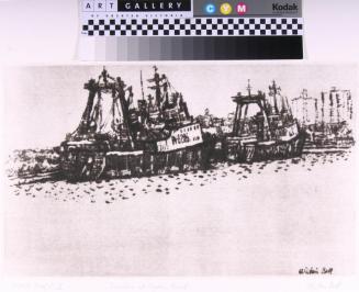 Descriptiontwo trawlers at dock one marked "PV0205"Status