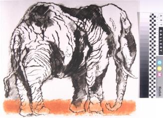 Descriptionstanding elephant on an orange foreground, standingStatus