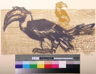 Descriptiontwo hornbills, a larger black image in the foreground, smaller taupe image in the backgroundStatus