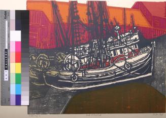 Descriptionone large boat in profile in the centre, red and orange buildings in the backgroundStatus