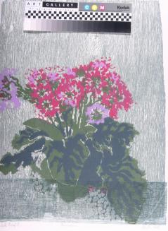 Descriptionbouquet of pink and purple cineraria flowers amid an olive green backgroundStatus