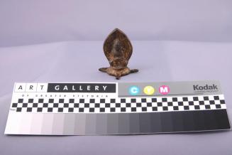 DescriptionAvalokitesvara on round lobed base, in dhyanasna & with hand in namaskara mudra; perforated protruberance at back on neck & perforated at bottom edge at backStatus