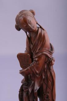 DescriptionMaiden in a flowing robe, leans on a table with mirror in her hand and head turned to the side.Colour: brown
