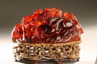DescriptionCarving is densely ornate with horses against a rocky mountain strewn with foliage the amber of semi-translucent reddish-brown tone.Status