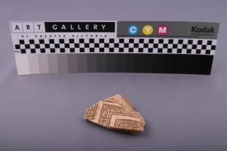 DescriptionShard has an incised geometric motif on one surface with traces of red ochre.Pattern: geometric