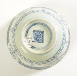 Descriptioncircular bowl has Blue and white decoration on the exterior and rounded sidesStatus
