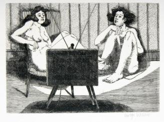 DescriptionFrom a portfolio of 12 etchings entitled Summer Shadows, Summer Dreams;nude couple watching TV.Colour: black; white