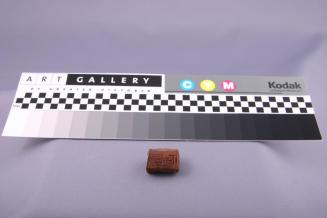 DescriptionBead is five sided in the B-C cross-section, truncated on 2 ends. It is perforated longitudinally but one end is filled in. Incised geometric pattern on 4 surfaces. Red pigment traces apparent.Status
