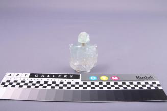 DescriptionBody is carved with a relief design of 2 dragons, heads meeting on one side, legs etc curled around sides and back. Aquamarine is clear with a slight blue tinge. Stopper has as dragon carved on it and is of the same material.Status