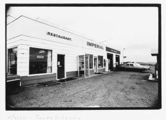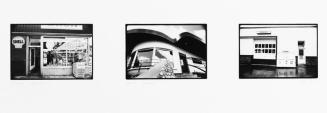 DescriptionExhibition component consisting of 3 single black and white photographs of restaurants and gas stations.