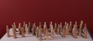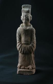 DescriptionFigurine of a standing court official with hands clasped together inside the robe sleeves at front. Small rectangular base.Status