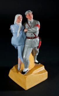 DescriptionFigurine depicts two Chinese figures, a man and a woman dressed in Revolutionary garb, in a dance pose. The figures are glazed and rest on a square base.Status