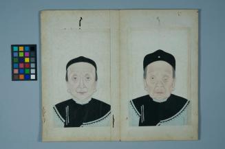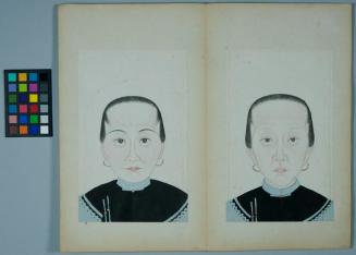 DescriptionPartial album of 36 sample portraits for ancestral paintings. Individual frontal view, colour paintings have been glued onto the pages.Status