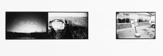 DescriptionExhibition component consisting of one double frame and on single frame black and white photographs of cars, restaurant and roads etc.Colour: black; white