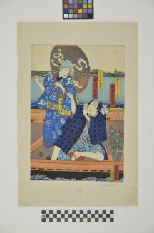 Descriptionkabuki actoris, Nakamura Ebizo ? (Left) and Bando Hikosaburo are in the roles of two passengers on a ferry boart.Status