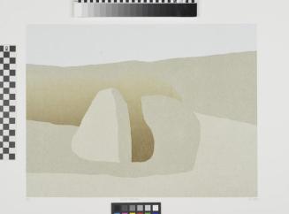 DescriptionLandscape with blue skyColour: pale blue; buff; pale buff; brown