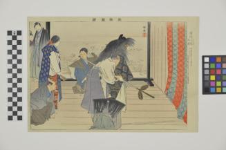 DescriptionUnlike the static traditional ukiyo-e, Noh-gaku Zue used the dynamic black lines and many "bokashi" to indicate the 3-dimensional effect. They gave the lines the impression of the fresh, naturalistic paintings, instead of the traditional style prints.Status
