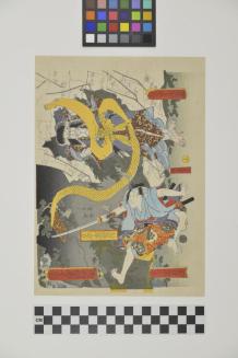 DescriptionTwo uncut book cover illustrations for "Wabunko" vol. 41 Part 1 and Part 2. Story by Mantei Ouga. Evil magician is reading the magic scroll to deflect the shower of arrows and a samurai trying to attack him.Status