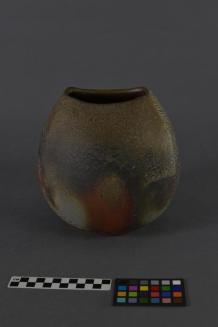 DescriptionReddish brown colouring, unglazed. Sides are rough to the touch, and display 'markings' which are the result of the firing process.Status