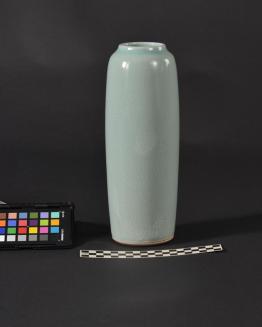 DescriptionTall crackle celadon porcelain vase. High fired reduction.Status