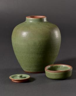 DescriptionGreen glazed pot with two lids. Design based on a 19th century Chinese export ceramic jar. Called by the artist a "rose jar to hold preserved petals"Status