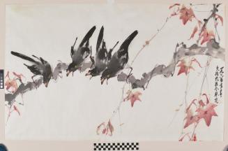 DescriptionFour crows gathered on a branch, seemingly cawing at something.Status