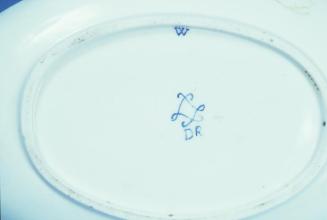 Descriptionoval dish with lid, attached to oblong base, lid has a small knob finialStatus