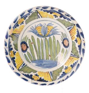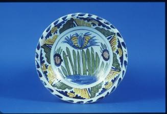 DescriptionColours are from cobalt, antimony, mixed with copper, iron , tin glazePattern: Blue Dash; tulip