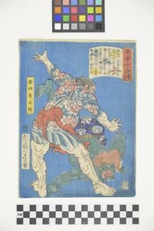 Biyu Suikoden (-like a tattooed Hercules) wrestling with the devil of Konjin