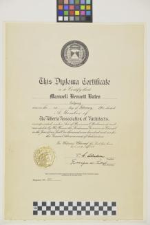 DescriptionDiploma, Alberta Association of Architects,awarded to Maxwell Bates, Feb.1, 1951Status