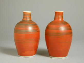DescriptionThin silver brushed enamel on red enamel. Gray-white ground interior & exteriorStatus