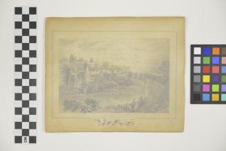 DescriptionA river curves in front of a large castle. There is a small sail boat on the river & a small figure on the near bank.Status