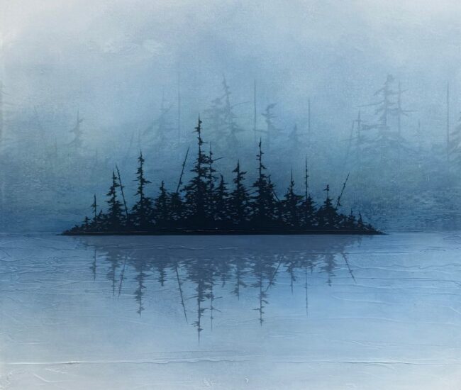 “I am primarily a self taught, full time artist with nature as my muse and an passion to create. To translate the wonder of the natural world through the movement of my paint brush, molten wax dripping…my impetus. Layer after luminous layer, my paintings come to life, the essence of a glorious sky that ‘moved me’ that morning, or of a tree that gave me pause, admiring its naked strength. To capture these feelings and emotions in my work, a sense of calm rendered….my purpose is fulfilled .
