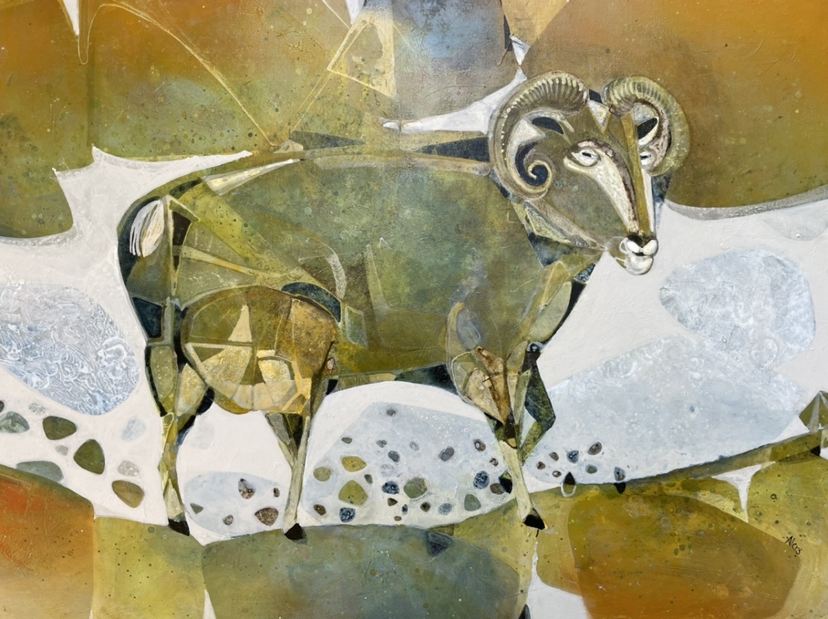 I work between the two main processes of control and spontaneity. The control lies in the conscious choices I make to strengthen the painting, and spontaneity creates interesting effects that I build on. The paint is allowed to express itself by the way it moves and dries and the negative spaces chosen are key to its development.