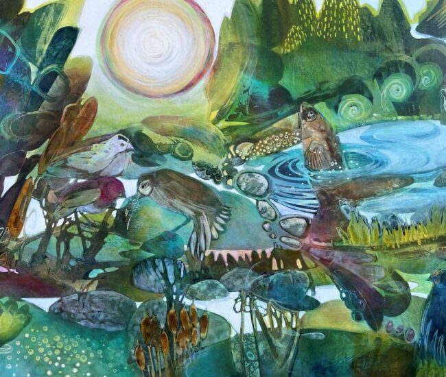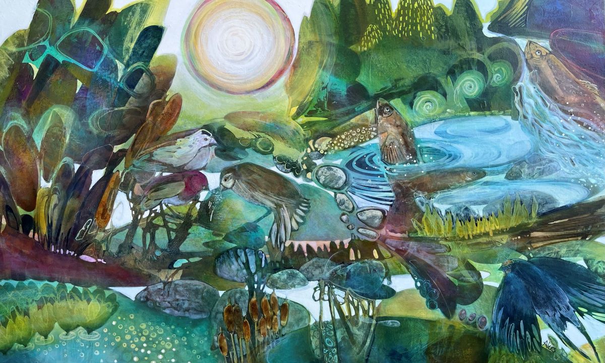 “I see my completed canvas as an evolution. Marks and strokes made in the beginning are built on or edited. Editing doesn’t necessarily mean completely gone. They become a part of the history of the painting and their shadow effect is an enhancement.