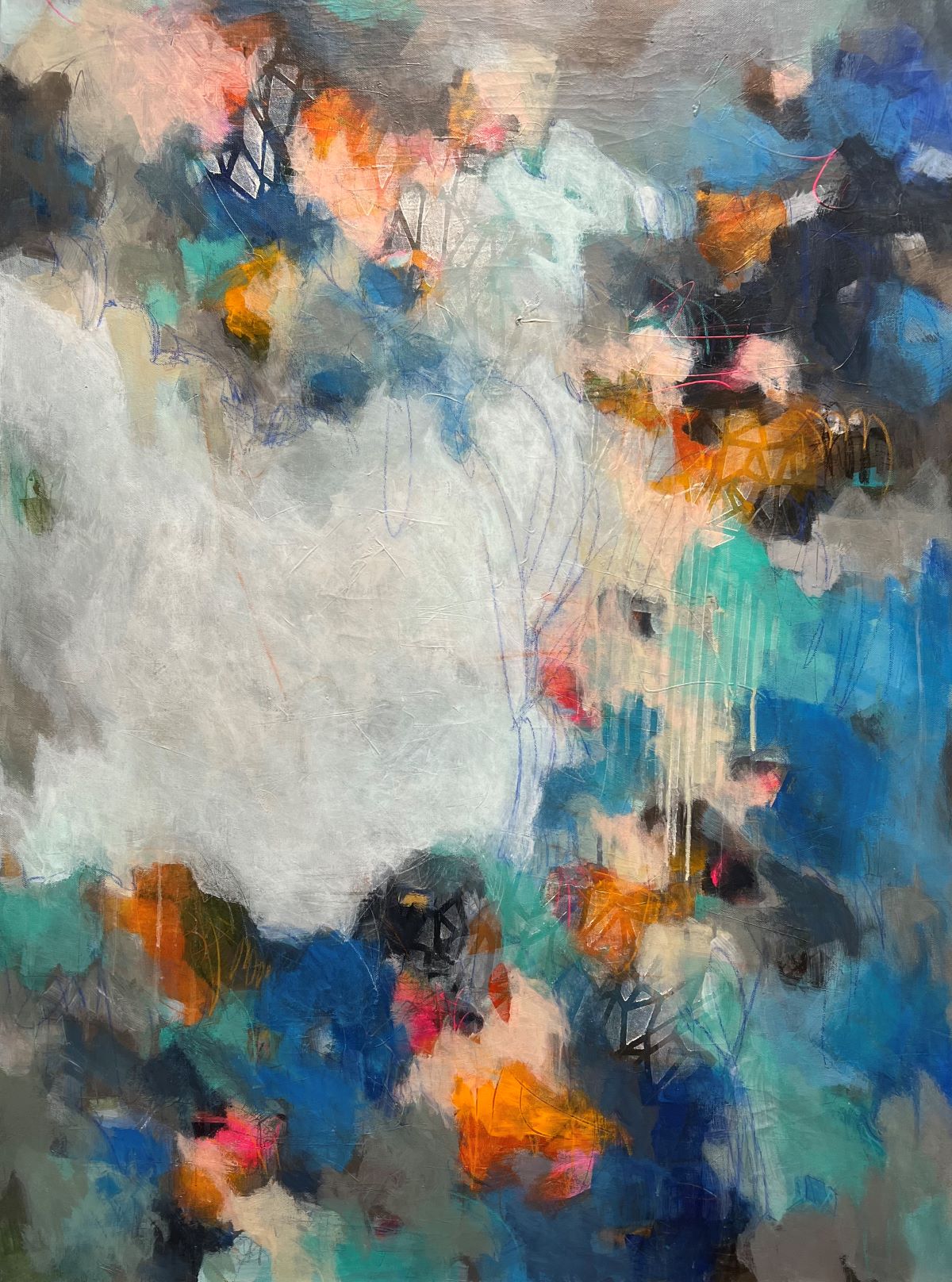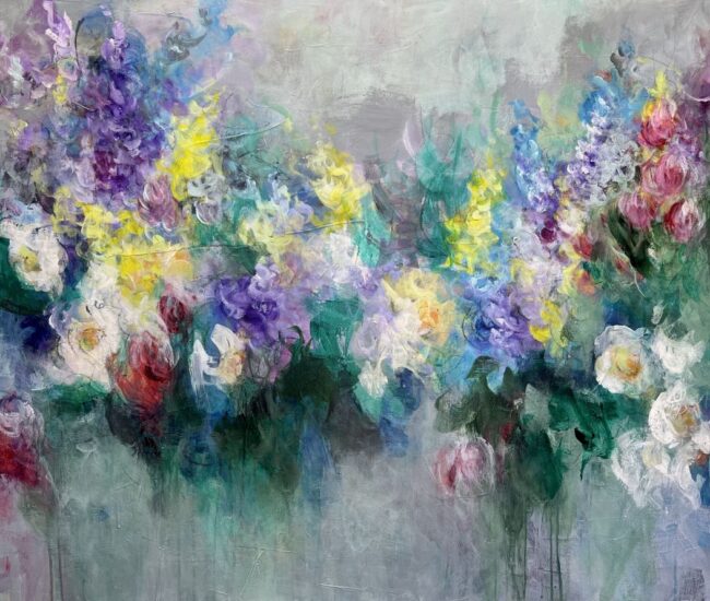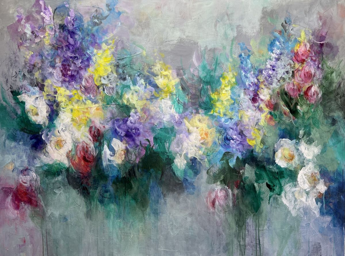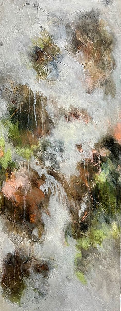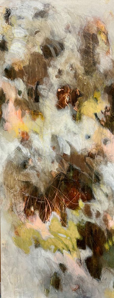 I love to paint intuitively and freely. I am always surprised when I finish a piece after numerous layers that may take weeks or months. Then I see the image from inspirations accumulated over time; from the nature, including sense of the seasons, shapes, sounds, and movements. The Brush strokes and compositions are often influenced by the past practice of Japanese calligraphy and Ikebana practice. My regular Yoga practice helps me to generate “Ki” (the flow of internal energy) keeping me focused.
