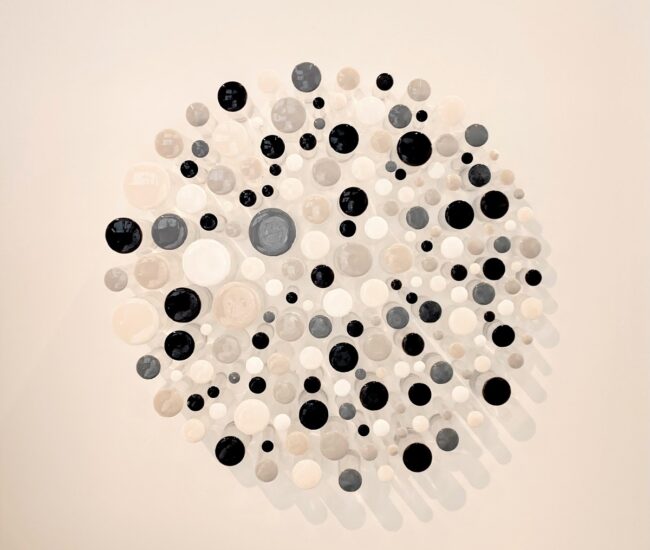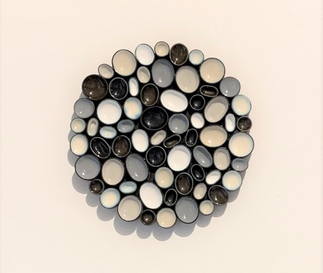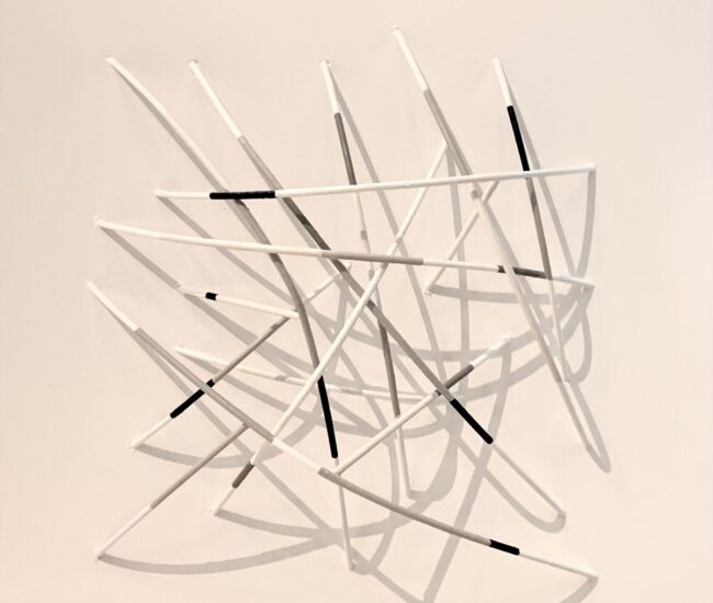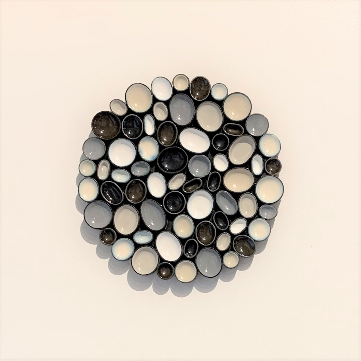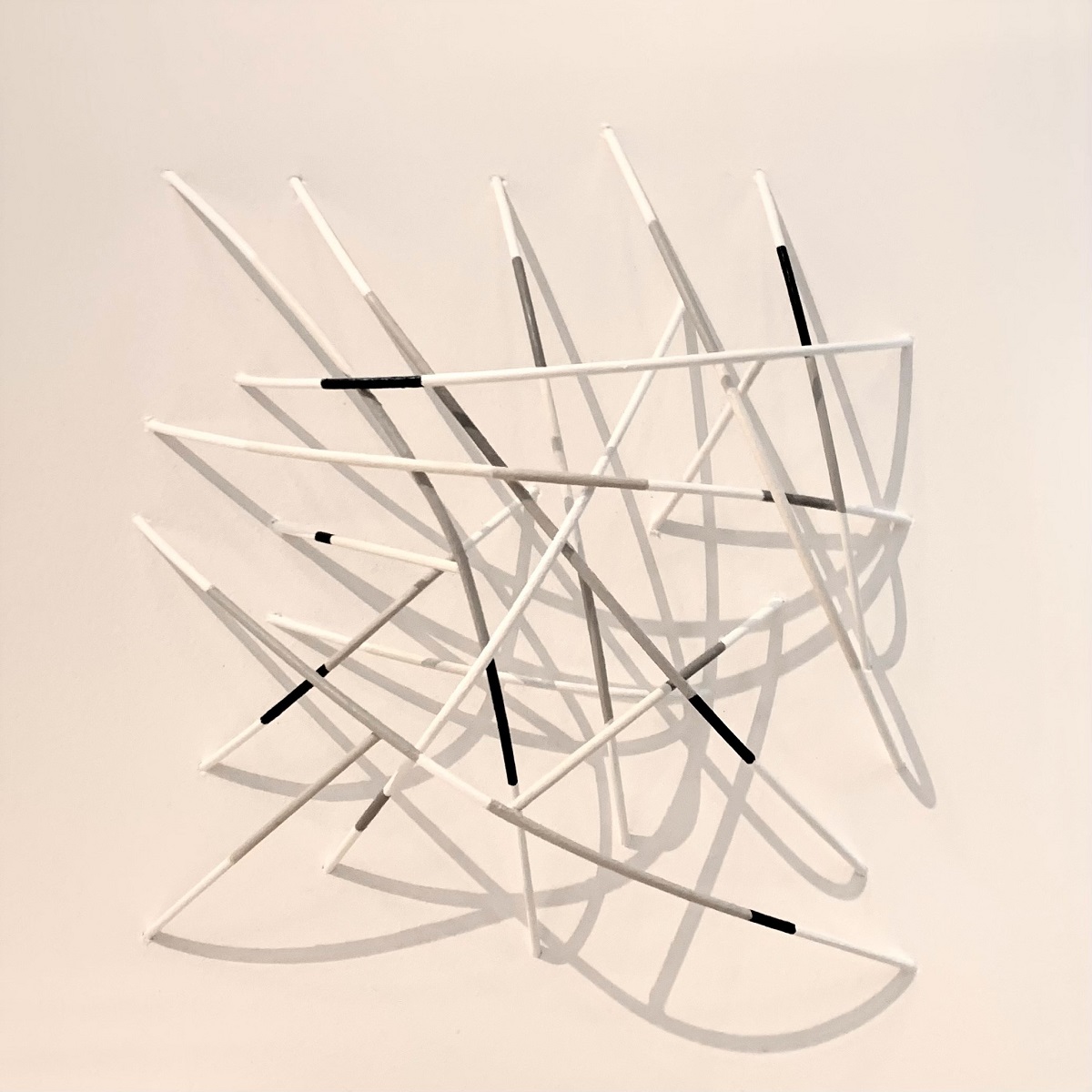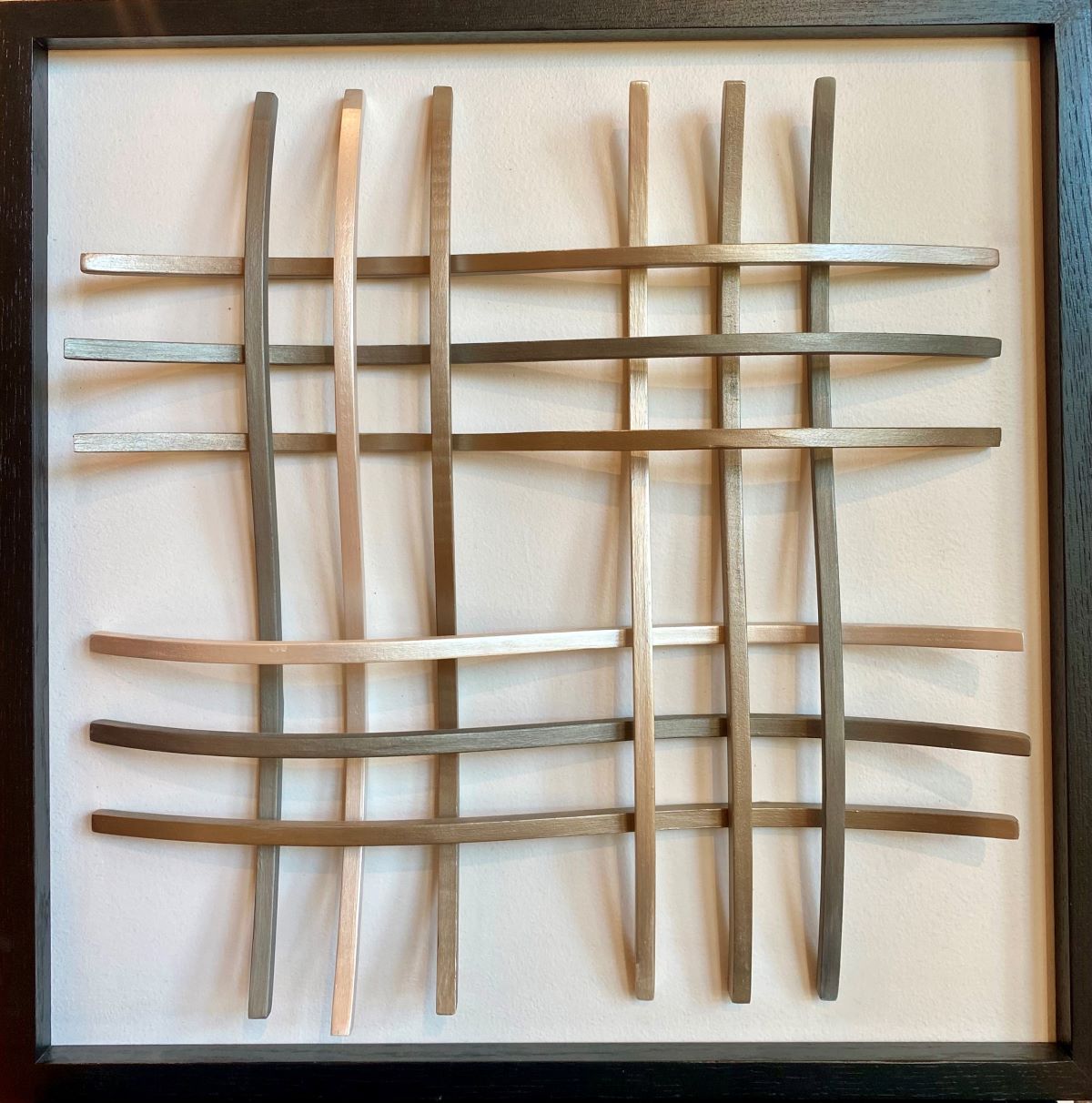 At once graphic and sculptural, Richelle’s work plays with shape, colour, texture, light and shadow to create engaging, one-of-a-kind art pieces. Inspired by colour-blocking and geometric design, it thrives on the use of everyday materials, from hardwoods and copper rings to rubber and plastic tubing.