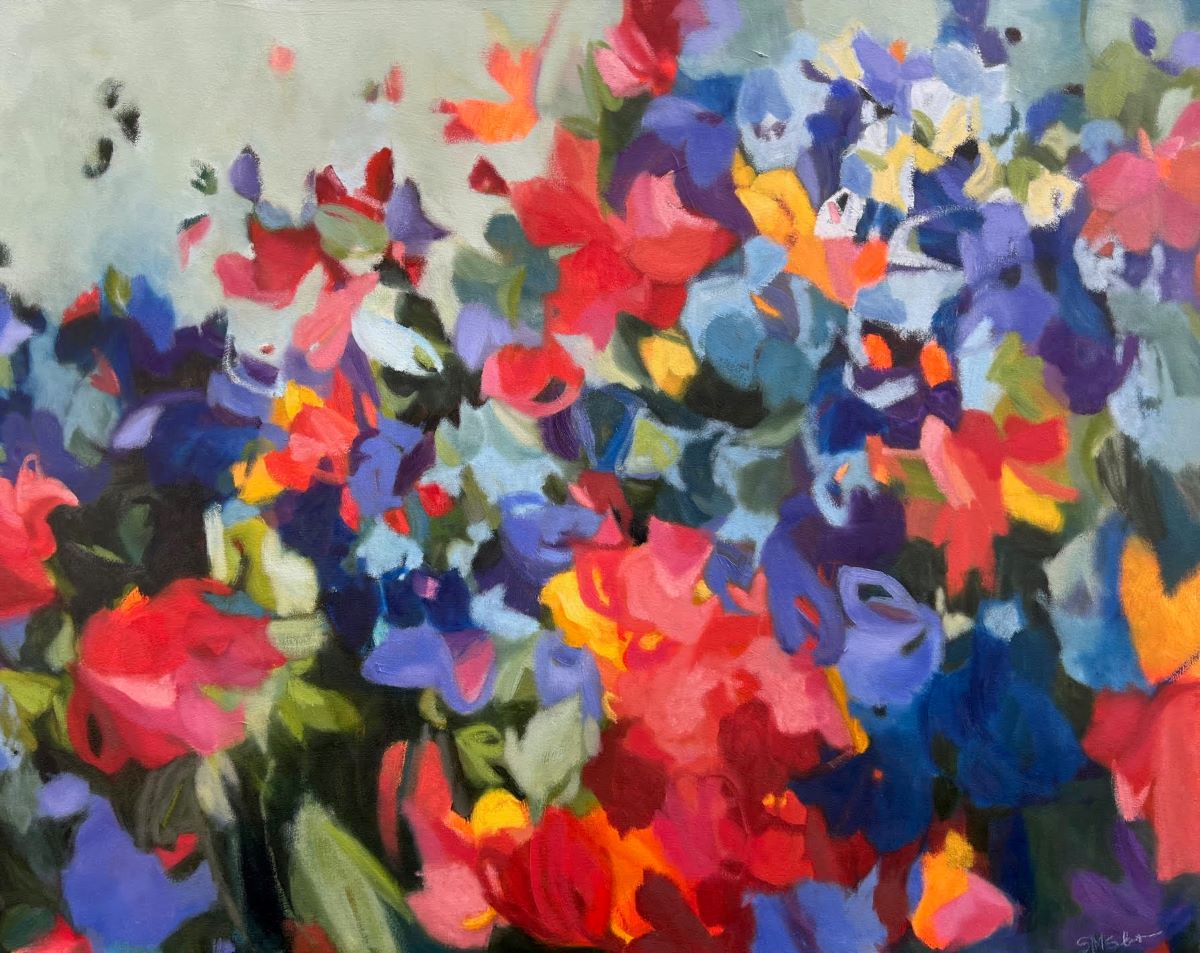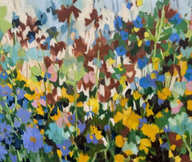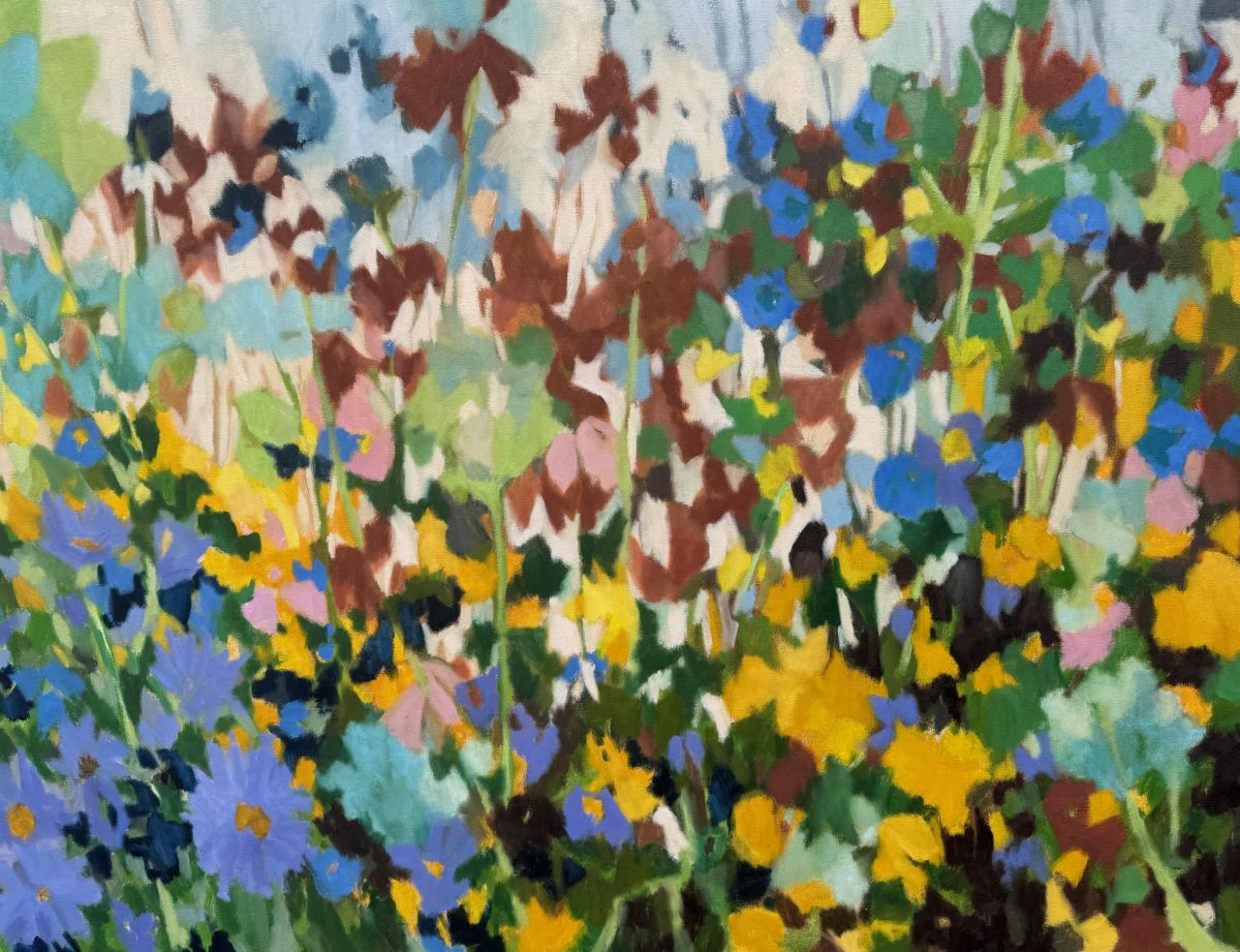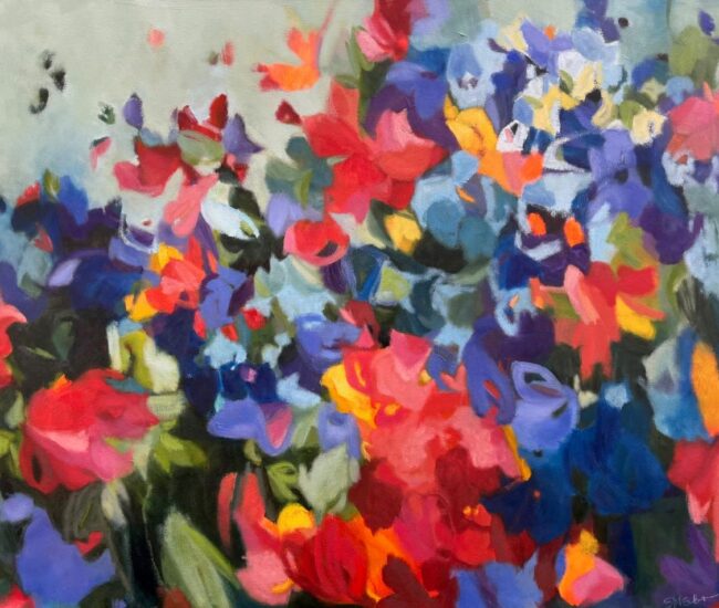 Inspiration often finds her during walks through wooded paths and tangled undergrowth, in the rhythm of nature’s cycles, and in fleeting, easily overlooked moments: flower petals scattered across pavement, ivy overtaking a fence, a mother adjusting her grip on a restless child. These simple, ordinary scenes carry layered meaning, and their quiet beauty informs the emotional textures within her work.