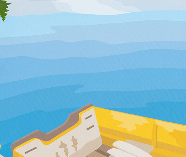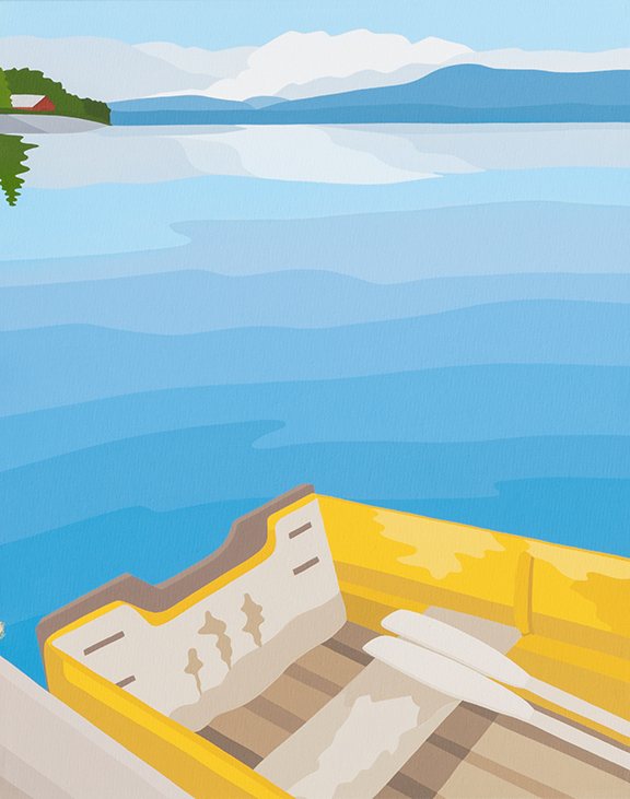 Stylistically influenced by artists such as Guido Molinari, Gustav Klimt and David Hockney, her love of nature and experience working with flowers can be seen in many of her painting series. Most recently, she explores landscapes and seascapes. Through photography and the subsequent painting, she attempts to capture the serenity and tranquility that occurs in nature