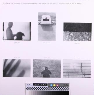 Description6 B&W photos of shadows; man & dog; memorial marker; grass & leaves; 1 of 18 pages;Status