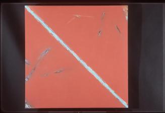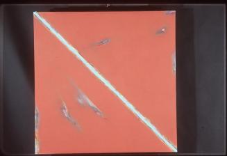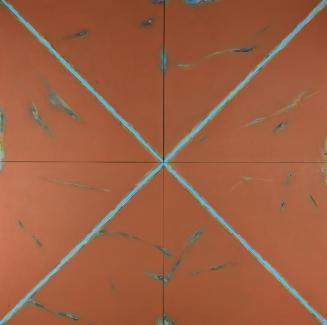 Descriptiona quadriptych; salmon background; blue diagonal stripe; multi coloured patchesStatus