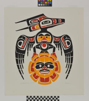Descriptiondepiction of Thunderbird carrying off the Sun in his enormous claws; Man is shown in the centre of the design, representing the spirit of the Thunderbird in the process of transformationStatus