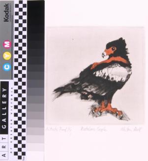 Descriptionone eagle standing, full profile view, orange on face, shoulder and feetStatus